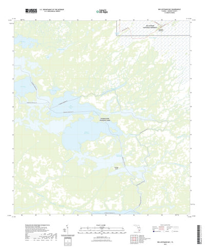A digital topographic map of Big Lostmans Bay in Florida produced by the United States Geological Survey (USGS) in 2021. The map is part of the National Map series of 7.5 minute quadrangle maps. It shows contour lines, place names, water bodies and roads. Map services and data available from U.S....