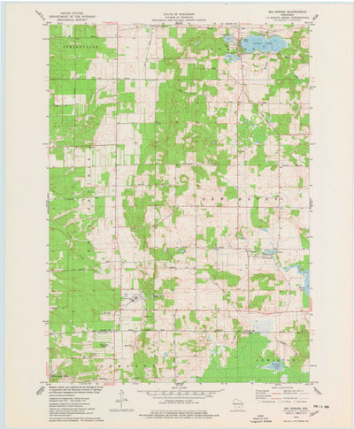 A 1975 historical topographic map of Big Spring in Wisconsin produced by the United States Geological Survey (USGS). It shows contour lines, place names, water bodies and roads. Map services and data available from U.S. Geological Survey, National Geospatial Program. Map was obtained from https:/...
