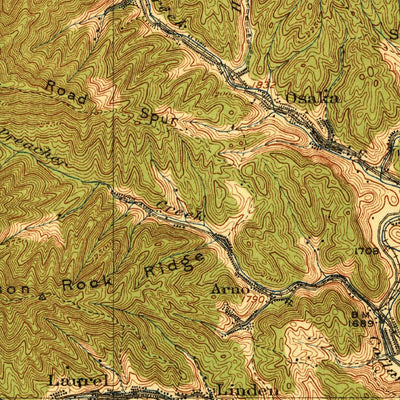 A 1922 historical topographic map of Big Stone Gap in Virginia produced by the United States Geological Survey (USGS). It shows contour lines, place names, water bodies and roads. Map services and data available from U.S. Geological Survey, National Geospatial Program. Map was obtained from https...