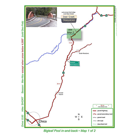 These are the two maps needed to hike the Bigleaf Pool in-and-back short hike. More details are available here: http://www.chicohiking.org/ValleyFoothill/Bigleaf-Pool.htm