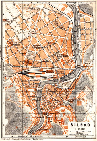 Old vintage map of Bilbao from 1929, located in Spain, produced by Wagner & Debes, at the scale of 1:15,000. This digitally re-mastered image is a part of the Discus Media 1900 Collection.