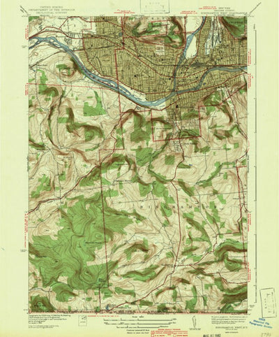 A 1942 historical topographic map of Binghamton West in New York produced by the United States Geological Survey (USGS). It shows contour lines, place names, water bodies and roads. Map services and data available from U.S. Geological Survey, National Geospatial Program. Map was obtained from htt...