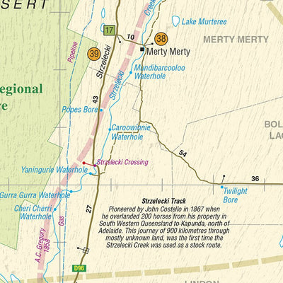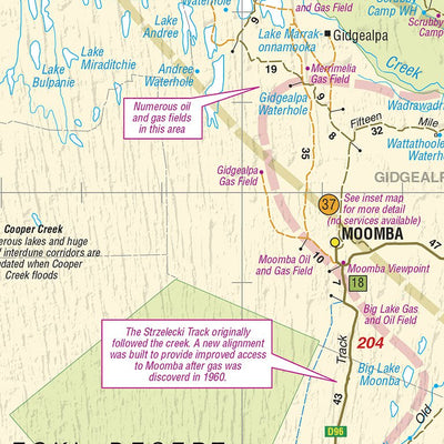 This magnificent area of outback Australia stretches from Betoota in the north, through Birdsville and south to Marree. The map also covers routes from Birdsville to Innamincka and Cameron Corner to Tibooburra in NSW, a popular entry point to this region north of Broken Hill. It also contains GPS...