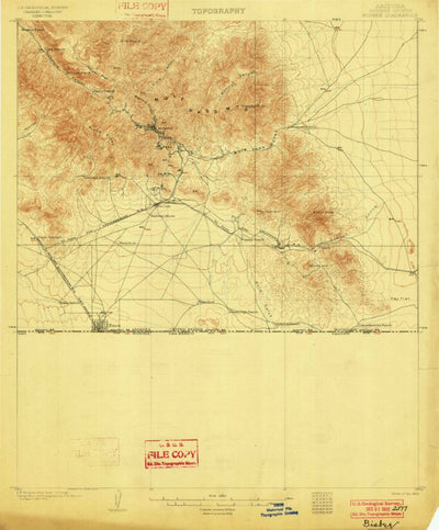 A 1902 historical topographic map of Bisbee in Arizona produced by the United States Geological Survey (USGS). It shows contour lines, place names, water bodies and roads. Map services and data available from U.S. Geological Survey, National Geospatial Program. Map was obtained from https://www.s...