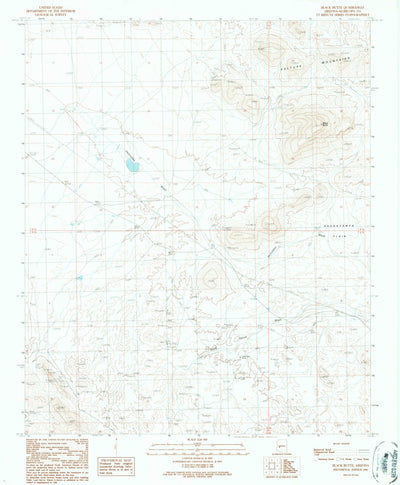 A 1990 historical topographic map of Black Butte in Arizona produced by the United States Geological Survey (USGS). It shows contour lines, place names, water bodies and roads. Map services and data available from U.S. Geological Survey, National Geospatial Program. Map was obtained from https://...