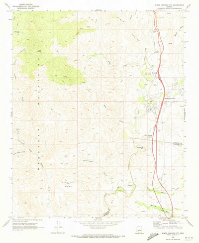 A 1969 historical topographic map of Black Canyon City in Arizona produced by the United States Geological Survey (USGS). It shows contour lines, place names, water bodies and roads. Map services and data available from U.S. Geological Survey, National Geospatial Program. Map was obtained from ht...
