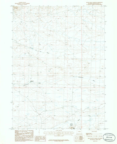 A 1986 historical topographic map of Black Rock North in Wyoming produced by the United States Geological Survey (USGS). It shows contour lines, place names, water bodies and roads. Map services and data available from U.S. Geological Survey, National Geospatial Program. Map was obtained from htt...