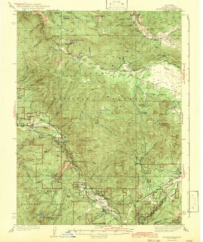 A 1943 historical topographic map of Blairsden in California produced by the United States Geological Survey (USGS). It shows contour lines, place names, water bodies and roads. Map services and data available from U.S. Geological Survey, National Geospatial Program. Map was obtained from https:/...