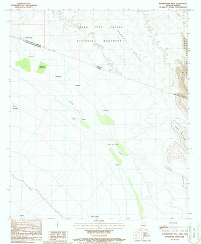 A 1988 historical topographic map of Blankenship Well in Arizona produced by the United States Geological Survey (USGS). It shows contour lines, place names, water bodies and roads. Map services and data available from U.S. Geological Survey, National Geospatial Program. Map was obtained from htt...