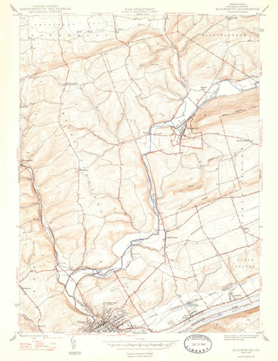 A 1947 historical topographic map of Bloomsburg in Pennsylvania produced by the United States Geological Survey (USGS). It shows contour lines, place names, water bodies and roads. Map services and data available from U.S. Geological Survey, National Geospatial Program. Map was obtained from http...