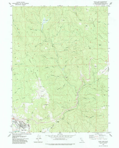 A 1979 historical topographic map of Blue Lake in California produced by the United States Geological Survey (USGS). It shows contour lines, place names, water bodies and roads. Map services and data available from U.S. Geological Survey, National Geospatial Program. Map was obtained from https:/...