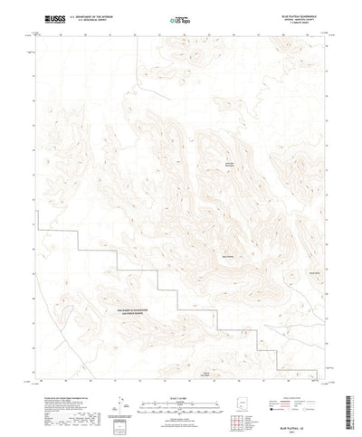 A digital topographic map of Blue Plateau in Arizona produced by the United States Geological Survey (USGS) in 2021. The map is part of the National Map series of 7.5 minute quadrangle maps. It shows contour lines, place names, water bodies and roads. Map services and data available from U.S. Geo...