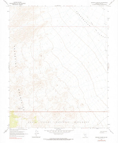 A 1967 historical topographic map of Bonnie Claire SE in Nevada produced by the United States Geological Survey (USGS). It shows contour lines, place names, water bodies and roads. Map services and data available from U.S. Geological Survey, National Geospatial Program. Map was obtained from http...