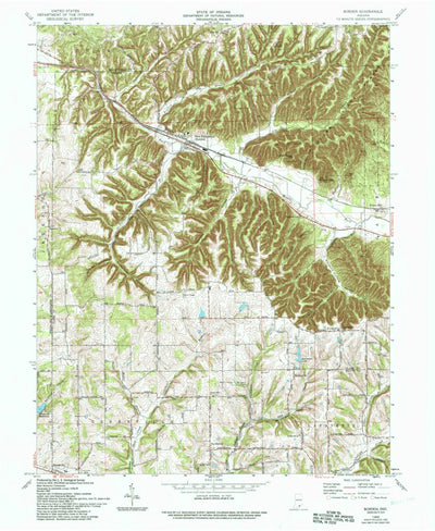 A 1966 historical topographic map of Borden in Indiana produced by the United States Geological Survey (USGS). It shows contour lines, place names, water bodies and roads. Map services and data available from U.S. Geological Survey, National Geospatial Program. Map was obtained from https://www.s...