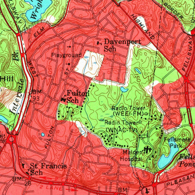 A 1956 historical topographic map of Boston North in Massachusetts produced by the United States Geological Survey (USGS). It shows contour lines, place names, water bodies and roads. Map services and data available from U.S. Geological Survey, National Geospatial Program. Map was obtained from h...