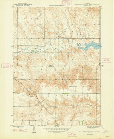 A 1948 historical topographic map of Box Butte Reservoir West in Nebraska produced by the United States Geological Survey (USGS). It shows contour lines, place names, water bodies and roads. Map services and data available from U.S. Geological Survey, National Geospatial Program. Map was obtained...