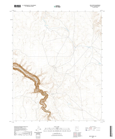 A digital topographic map of Box K Ranch in Arizona produced by the United States Geological Survey (USGS) in 2021. The map is part of the National Map series of 7.5 minute quadrangle maps. It shows contour lines, place names, water bodies and roads. Map services and data available from U.S. Geol...