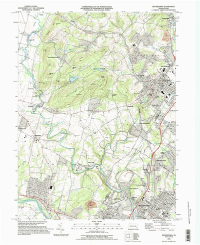 A 1995 historical topographic map of Boyertown in Pennsylvania produced by the United States Geological Survey (USGS). It shows contour lines, place names, water bodies and roads. Map services and data available from U.S. Geological Survey, National Geospatial Program. Map was obtained from https...