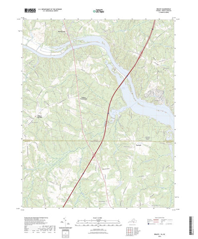 A digital topographic map of Bracey in Virginia produced by the United States Geological Survey (USGS) in 2022. The map is part of the National Map series of 7.5 minute quadrangle maps. It shows contour lines, place names, water bodies and roads. Map services and data available from U.S. Geologic...