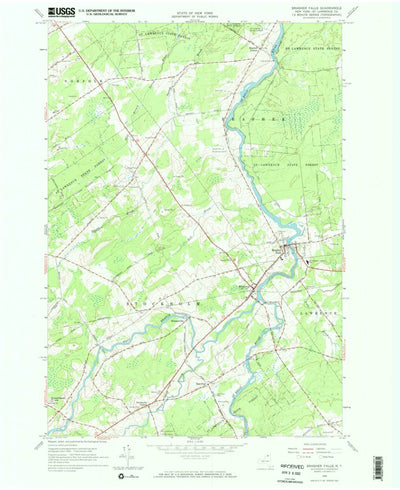 A 1964 historical topographic map of Brasher Falls in New York produced by the United States Geological Survey (USGS). It shows contour lines, place names, water bodies and roads. Map services and data available from U.S. Geological Survey, National Geospatial Program. Map was obtained from https...