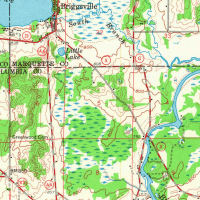 A 1958 historical topographic map of Briggsville in Wisconsin produced by the United States Geological Survey (USGS). It shows contour lines, place names, water bodies and roads. Map services and data available from U.S. Geological Survey, National Geospatial Program. Map was obtained from https:...