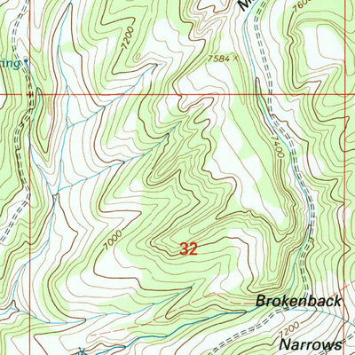A 1993 historical topographic map of Brokenback Narrows in Wyoming produced by the United States Geological Survey (USGS). It shows contour lines, place names, water bodies and roads. Map services and data available from U.S. Geological Survey, National Geospatial Program. Map was obtained from h...