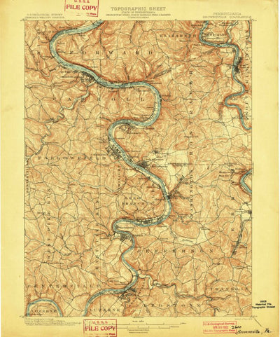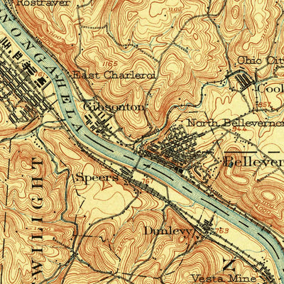 A 1902 historical topographic map of Brownsville in Pennsylvania produced by the United States Geological Survey (USGS). It shows contour lines, place names, water bodies and roads. Map services and data available from U.S. Geological Survey, National Geospatial Program. Map was obtained from htt...