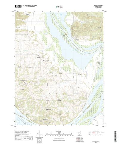 A digital topographic map of Brussels in Illinois produced by the United States Geological Survey (USGS) in 2021. The map is part of the National Map series of 7.5 minute quadrangle maps. It shows contour lines, place names, water bodies and roads. Map services and data available from U.S. Geolog...