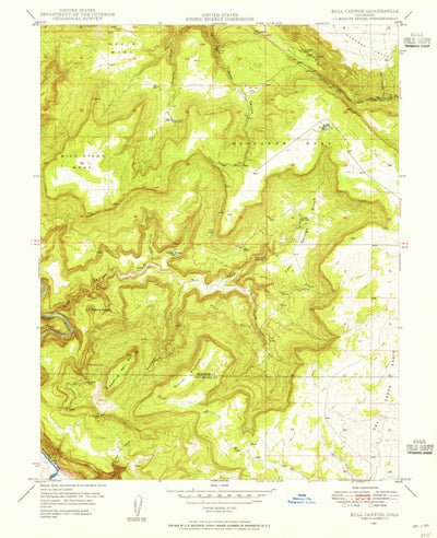 A 1948 historical topographic map of Bull Canyon in Colorado produced by the United States Geological Survey (USGS). It shows contour lines, place names, water bodies and roads. Map services and data available from U.S. Geological Survey, National Geospatial Program. Map was obtained from https:/...