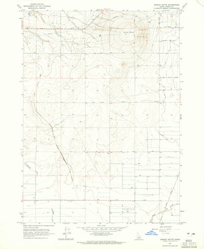 A 1964 historical topographic map of Burley Butte in Idaho produced by the United States Geological Survey (USGS). It shows contour lines, place names, water bodies and roads. Map services and data available from U.S. Geological Survey, National Geospatial Program. Map was obtained from https://w...