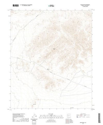 A digital topographic map of Butler Pass in Arizona produced by the United States Geological Survey (USGS) in 2021. The map is part of the National Map series of 7.5 minute quadrangle maps. It shows contour lines, place names, water bodies and roads. Map services and data available from U.S. Geol...