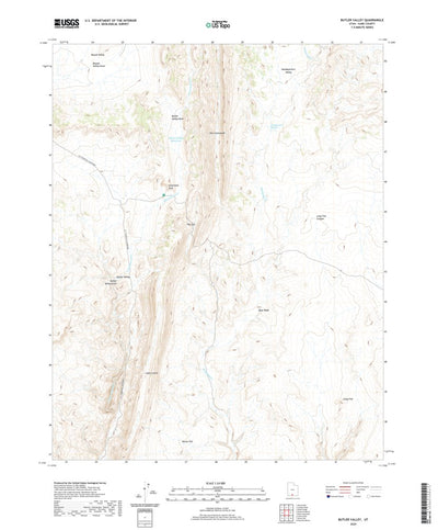 A digital topographic map of Butler Valley in Utah produced by the United States Geological Survey (USGS) in 2020. The map is part of the National Map series of 7.5 minute quadrangle maps. It shows contour lines, place names, water bodies and roads. Map services and data available from U.S. Geolo...