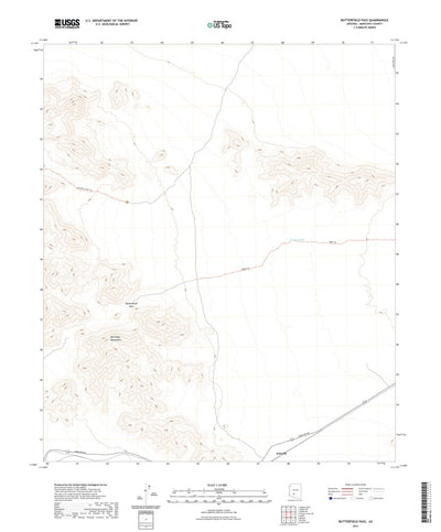 A digital topographic map of Butterfield Pass in Arizona produced by the United States Geological Survey (USGS) in 2021. The map is part of the National Map series of 7.5 minute quadrangle maps. It shows contour lines, place names, water bodies and roads. Map services and data available from U.S....