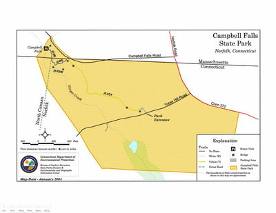 Campbell Falls State Park Reserve was a gift to the State of Connecticut and the Commonwealth of Massachusetts from the White Memorial Foundation of Litchfield Connecticut. The Whiting River, rising in Massachusetts falls nearly 100 feet before entering Connecticut. The park was placed under the ...
