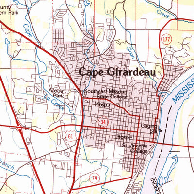 A 1984 historical topographic map of Cape Girardeau in Missouri produced by the United States Geological Survey (USGS). It shows contour lines, place names, water bodies and roads. Map services and data available from U.S. Geological Survey, National Geospatial Program. Map was obtained from http...