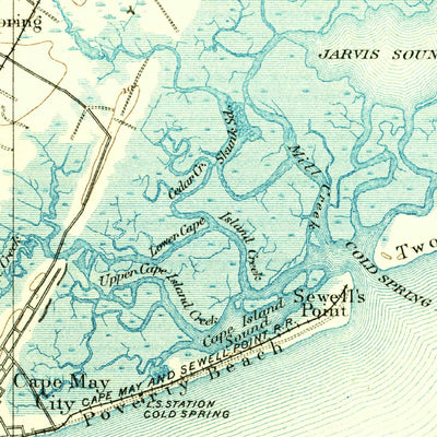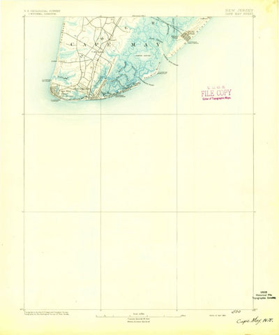 A 1893 historical topographic map of Cape May in New Jersey produced by the United States Geological Survey (USGS). It shows contour lines, place names, water bodies and roads. Map services and data available from U.S. Geological Survey, National Geospatial Program. Map was obtained from https://...