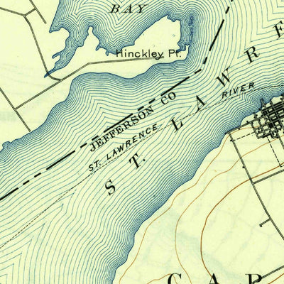 A 1944 historical topographic map of Cape Vincent in New York produced by the United States Geological Survey (USGS). It shows contour lines, place names, water bodies and roads. Map services and data available from U.S. Geological Survey, National Geospatial Program. Map was obtained from https:...
