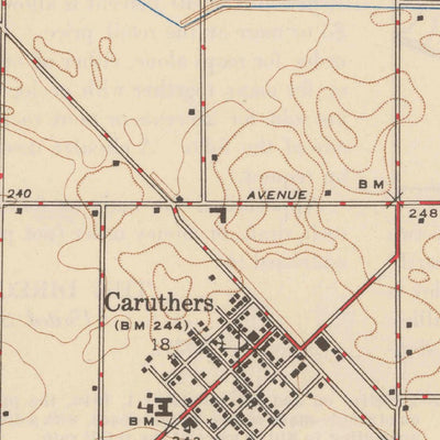 A 1947 historical topographic map of Caruthers in California produced by the United States Geological Survey (USGS). It shows contour lines, place names, water bodies and roads. Map services and data available from U.S. Geological Survey, National Geospatial Program. Map was obtained from https:/...