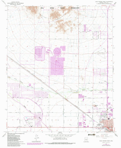 A 1965 historical topographic map of Casa Grande West in Arizona produced by the United States Geological Survey (USGS). It shows contour lines, place names, water bodies and roads. Map services and data available from U.S. Geological Survey, National Geospatial Program. Map was obtained from htt...