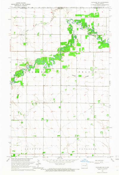 A 1964 historical topographic map of Cavalier NW in North Dakota produced by the United States Geological Survey (USGS). It shows contour lines, place names, water bodies and roads. Map services and data available from U.S. Geological Survey, National Geospatial Program. Map was obtained from htt...