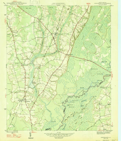 A 1947 historical topographic map of Centenary in South Carolina produced by the United States Geological Survey (USGS). It shows contour lines, place names, water bodies and roads. Map services and data available from U.S. Geological Survey, National Geospatial Program. Map was obtained from htt...