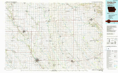 A 1985 historical topographic map of Charles City in Iowa produced by the United States Geological Survey (USGS). It shows contour lines, place names, water bodies and roads. Map services and data available from U.S. Geological Survey, National Geospatial Program. Map was obtained from https://ww...