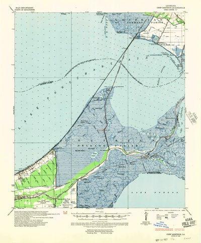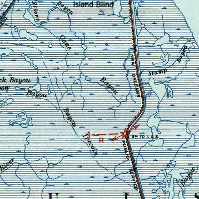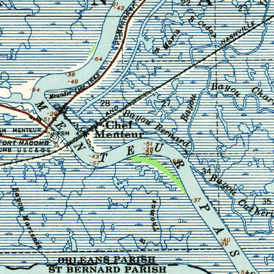 A 1936 historical topographic map of Chef Menteur in Louisiana produced by the United States Geological Survey (USGS). It shows contour lines, place names, water bodies and roads. Map services and data available from U.S. Geological Survey, National Geospatial Program. Map was obtained from https...
