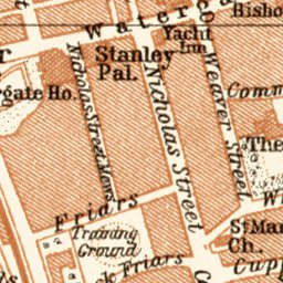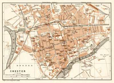 Historical map of Chester from 1906, with location in Great Britain, produced by Wagner & Debes, at the scale of 1:10,400. This digitally re-mastered image is a part of the Discus Media 1900 Collection.