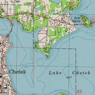 A 1978 historical topographic map of Chetek in Wisconsin produced by the United States Geological Survey (USGS). It shows contour lines, place names, water bodies and roads. Map services and data available from U.S. Geological Survey, National Geospatial Program. Map was obtained from https://www...