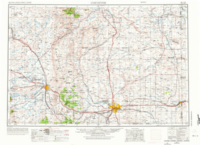 A 1954 historical topographic map of Cheyenne in Wyoming produced by the United States Geological Survey (USGS). It shows contour lines, place names, water bodies and roads. Map services and data available from U.S. Geological Survey, National Geospatial Program. Map was obtained from https://www...
