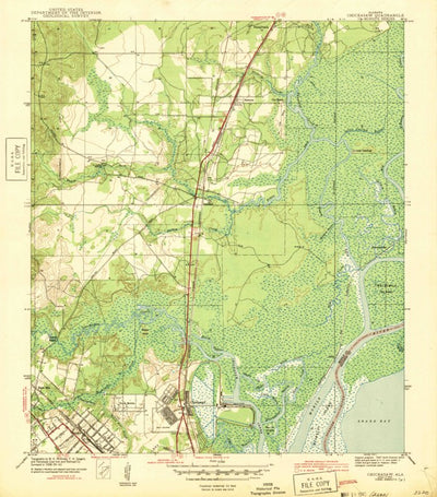 A 1943 historical topographic map of Chickasaw in Alabama produced by the United States Geological Survey (USGS). It shows contour lines, place names, water bodies and roads. Map services and data available from U.S. Geological Survey, National Geospatial Program. Map was obtained from https://ww...
