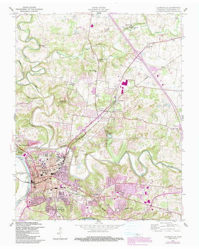 A 1957 historical topographic map of Clarksville in Tennessee produced by the United States Geological Survey (USGS). It shows contour lines, place names, water bodies and roads. Map services and data available from U.S. Geological Survey, National Geospatial Program. Map was obtained from https:...