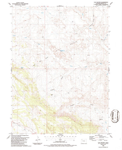 A 1986 historical topographic map of Clay Buttes in Colorado produced by the United States Geological Survey (USGS). It shows contour lines, place names, water bodies and roads. Map services and data available from U.S. Geological Survey, National Geospatial Program. Map was obtained from https:/...