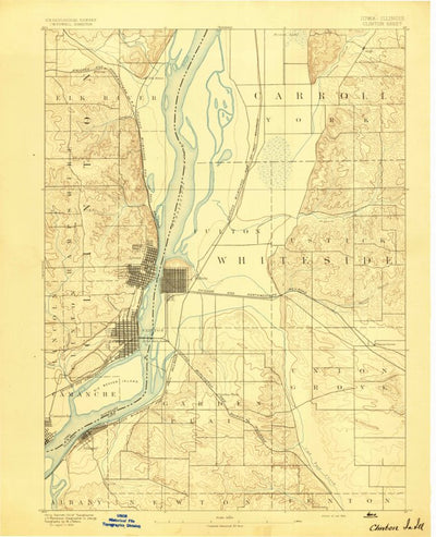 A 1894 historical topographic map of Clinton in Iowa produced by the United States Geological Survey (USGS). It shows contour lines, place names, water bodies and roads. Map services and data available from U.S. Geological Survey, National Geospatial Program. Map was obtained from https://www.sci...